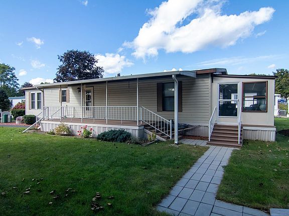 Located in Cocheco River Estates, a 55+ community is this well maintained 2 BR mobile. It boasts a primary bedroom with plenty of closet storage and a 3/4 bath. Kitchen and dining rooms have ample storage areas, a separate laundry area, and a 3-season porch overlooking the river. The exterior boasts mature landscaping, covered porches to sit, relax and enjoy the days, all this and a workshop in the shed too! Located close to highway and shopping.