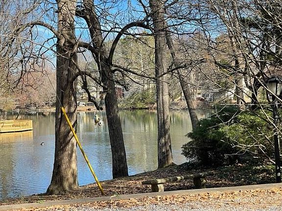 Enjoy this charming well maintained one story home. This home is nestled among the trees and offers a lovely view of the lake. Kitchen features lots of cabinet space, Corian counters, and pretty glass tile backsplash, all appliances including washer and dryer stay. Dining area opens to the Living Room that has pretty knotty pine paneling, wood burning fireplace and built in shelving. The Family/sitting room features large windows to give plenty of natural light, awesome view of the lake and offers an open spacious feeling. There are 2 good sized bedrooms that feature large closets, plus an office that can be used as a 3rd bedroom. 1 1/2 baths finish the living space. Home has an attached 1 car carport plus and additional detached 2 car garage. Sale includes additional lot across that road that lends to a great view. If you are looking for a private oasis in the middle of town, this one is for you. Home is being sold as is and seller will not do any inspections.
