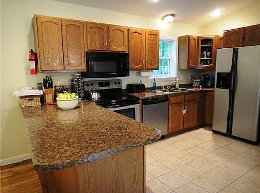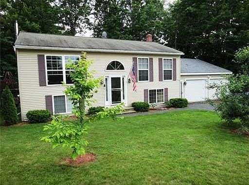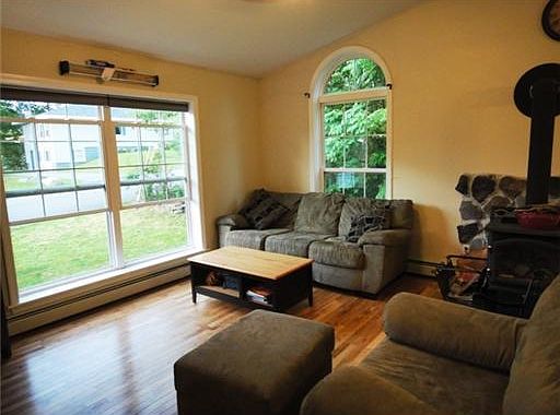 Exceptional 3-Bedroom, 2-Bath Split w/oak kitchen w/SS appliances, spacious living room w/cathedral ceilings, wood flooring & hearth w/woodstove, beautiful tiled bathroom, oversized 2-car garage, 2-level deck & more situated in excellent neighborhood.