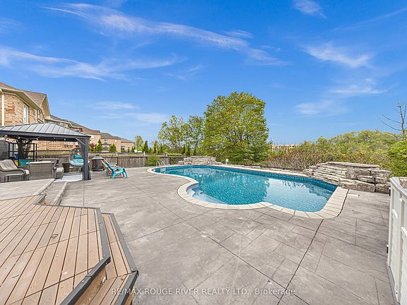 Absolutely Stunning Detached Home Situated In The Heart Of The Prestigious Williamsburg Neighbourhood, Boasting Over 3,000 Sq Ft Of Luxurious Living Space On A Rare And Serene Ravine Lot With A Spectacular Inground Pool, Double Waterfall Features, And Breathtaking Western Exposure For Sunset Views Plus This Family Home Perfectly Positioned Steps Away From The Iconic Rocketship Park Truly A Dream Location For Families! The Exterior Is Fully Landscaped With Stamped Concrete, Offering A Low-maintenance Lifestyle. Step Inside To An Inviting Open-concept Layout Enhanced By New Gleaming Hardwood Floors And An Upgraded Staircase. The Combined Living And Dining Areas Are Bathed In Natural Light From Oversized Windows. The Spacious Family Room Is Perfect For Entertaining Or Relaxing, Highlighted By Crown Moulding, Large Windows With Ravine Views, And A Coffered Ceiling That Adds Architectural Elegance. The Upgraded Kitchen With Stainless Steel Appliances, A Large Centre Island, Granite Countertops, Stylish Backsplash, And A Breakfast Area With Walk-out To The Elevated Deck Overlooking Your Backyard Paradise. Upstairs, You'll Find Five Spacious Bedrooms, Perfect For A Growing Family. The Primary Suite Offers A 5-piece Ensuite, Walk-in Closet, And Ravine Views. The 4th Bedroom Also Features Its Own 4-piece Ensuite And Walk-in Closet. The Remaining Bedrooms Are Spacious, Each With Large Windows And Ample Closet Space, Providing Comfort And Functionality For Everyone. The Fully Finished Walk-out Basement With A Separate Entrance Offers Endless Possibilities An Ideal Setup For Extended Family, Guests, Or Potential Rental Income. Basement Includes Two Bedrooms And A Kitchen, Providing Comfort And Privacy For A Fantastic Investment Opportunity. This Home Truly Has It All. Located Steps Away From Top-rated Schools Like Williamsburg Public, Parks, Shopping, Restaurants, Hwy 401, 412, And The Go Station. Truly A Forever Home. Property Was Previously Staged.