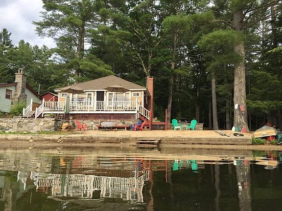 WATERFRONT !! Relax and enjoy yourself in this 3 season house with a large deck overlooking the private beach directly on 32 acre Moore's Pond. Full kitchen, dining & living room, 1/2 bathroom w/outdoor shower, 2 bedrooms, and plenty of additional sleeping space. The cottage is one floor with a loft. Two Patio areas! Roof, septic and well were all new 5 years ago. Home can come fully furnished so all you have to do is enjoy!!