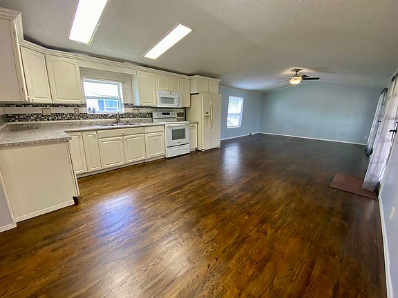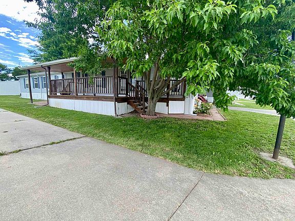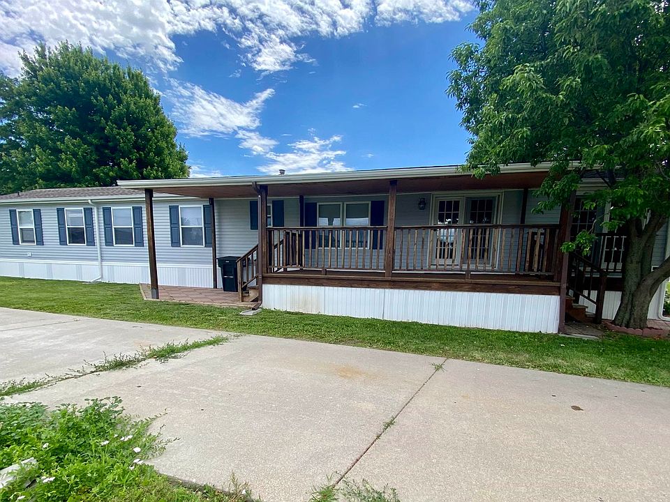Check out this spacious Skyline home located at Kingswood Plaza. This open concept home offers 4 bedrooms, 2 bathrooms, eat-in kitchen, newer siding, primary bedroom with primary bathroom, appliances, plus so much more! There is a large covered deck and an attached storage shed. Lot rent is $420/month and includes garbage, common area, swimming pool, and storm shelter. New owners must pass the application process through Kingswood Plaza. Call for a showing today!