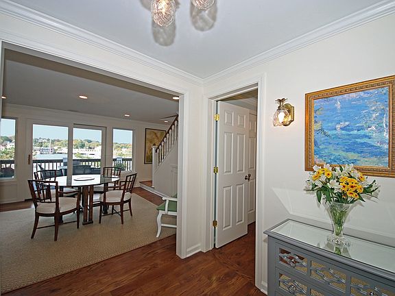 With an extraordinary setting directly on the Saugatuck River, this beautifully renovated 2,870 square foot, four Bedroom residence, with stunning views from every room, includes Living Room with Fireplace and custom Built-ins, Kitchen/Family Room opening onto an expansive Deck with Awning, first floor Master Bedroom, Walk-out Lower Level Apartment and attached Garage. The glorious .32 Acre property provides a stone Terrace, charming Gardens, Lily Ponds, Garden Shed, a detached, over-sized Two-Car Garage with Studio, and Dock at river's edge. First Floor: Entrance Hall with hardwood flooring and Guest Closet opening onto Family Room with hardwood flooring and sliding doors to Broad and expansive Deck with Awning. Kitchen with hardwood flooring, Dining Area, and Skylight. Appliances include, Refrigerator/Freezer, Gas Range, Dishwasher, and Microwave. Living Room with hardwood flooring, French Doors, custom mill-work and built-ins, and Gas Fireplace. Powder Room with hardwood flooring, Pedestal Sink, and very large Linen Closet. Master Bedroom Suite with hardwood flooring, sliding doors to Deck, Walk-in Closet, and en-suite Bath with Jet Tub and Separate Shower. Laundry Room with tile flooring, Pantry, access to attached One-Car Garage and Lower Level.