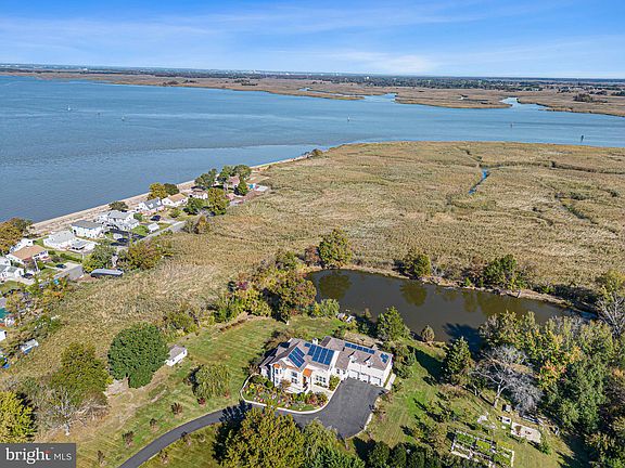 Don't miss this gem backing up to and overlooking the Delaware River. If you are looking for an estate that offers elegance and privacy then your search is over. The long driveway brings you back off the street to your own estate. As you pull up the drive you immediately see an elegant home boasting a 3 car garage and the home is surrounding by mature producing fruit trees and picnic areas. Enter the home to a grand two story foyer. As you continue in the formal two story living room awaits and is perfect for entertaining most any size gathering centered around a regal fire place. The eat in kitchen is a chef's dream boasting a large granite island, stainless steel appliances (Cook top, wall oven, microwave, wine refrigerator, refrigerator, dishwasher and disposal). The den abuts the kitchen allowing guest to mingle around the food. A second prep kitchen is off to the side. The first floor primary suite is a must see with vaulted ceilings, ceiling fans and double slider to back patio overlooking your own private pond. The primary full bath is something out of a five star hotel. With jetted tub, stall shower and an elegant double vanity. Rounding off the first floor is the half bath and office. Upstairs boasts 4 large bedrooms and 4 full bathrooms as well as a sitting room with a double slider to a deck overlooking the backyard pond with views to the river and beyond. The yard is nothing short of spectacular featuring mature fruit bearing trees, large fenced patios, picnic grounds, a stocked pond large enough to use row boats and canoes. Not to be out done only 2 blocks from the beaches. Move in and unpack you are home.