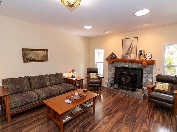 Coast Guard Estates Beauty. 3 bedroom, 2 bath on cul de sac lot, minutes to the beach and amenities. Custom design offers a wide, hardwood floor entry leading to a spacious living room with porcelain enameled pellet stove insert. Large primary bedroom suite new luxury vinyl plank flooring; high ceilings, crown molding; tiled bathroom floor; jetted tub. Formal dining room with slider out to fenced back yard. Bright eat-in kitchen with slider to finished sunroom. Garden shed, covered deck for outside entertainment. New roof (2021) siding replaced & painted (approx 2017). 2023-10-03