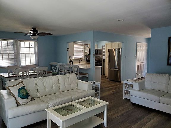 Beach Block, 100 yards to beach entrance. This home was totally rehabbed in 2018 including all new heating/AC, new gas water heater, new kitchen, new baths, new flooring, new windows, outdoor shower, new driveway, and new roof and hot tub in 2022. There is an outdoor patio with a roof in backyard, large front porch and mature gardens. This home has a solid Airbnb summer rental history.