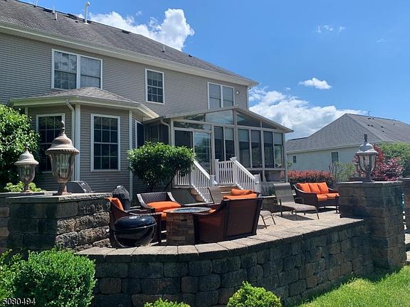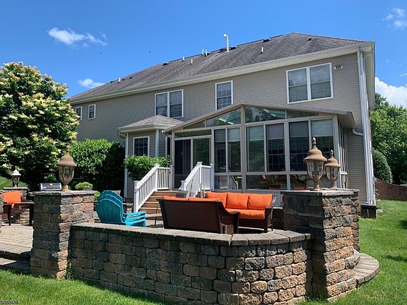 Stunning Colonial with impressive 2-story foyer, gourmet kitchen with center island breakfast bar, granite counters & stainless appliances, warm & inviting family room with gas fireplace, delightful 3-season room overlooking private, level yard, formal dining/living rooms with custom moldings and 1st level bedroom currently used as an office. Master suite offers sitting room, 2 walk-in closets & sumptuous master bath with 2 sink vanities, Jacuzzi style tub & stall shower. 3 additional bedrooms, wonderful loft area & full bath complete the 2nd level. Partially finished lower level includes rec room & media room with surround sound, screen & projector included in the sale. Beautiful paver patio for entertaining, extensive outdoor lighting, in-ground sprinklers, natural gas, public water/sewer. Hackettstown PO