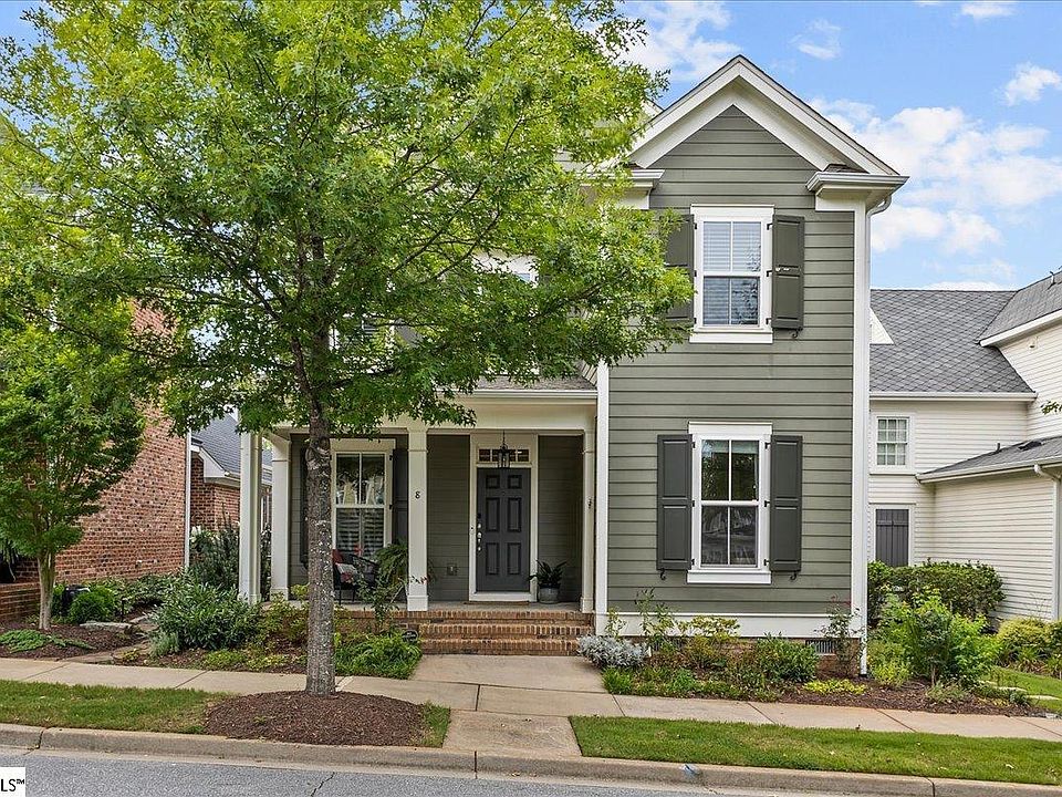 Located in the highly desirable Ruskin Square area of Hollingsworth Park, this stunning 4-bedroom, 3-bathroom home is move-in ready and offers low-maintenance living. The spacious living room features beautiful hardwood floors and a cozy gas fireplace, creating a warm and inviting atmosphere. The light-filled chef's kitchen boasts a large center island with a built-in wine chiller, granite countertops, and high-end stainless steel appliances, including a Thermador dishwasher and gas range with a steam component and pot filler. Enjoy evenings on the screened porch just off the dining room, perfect for relaxation. The property features a beautiful garden filled with lush plants and native birds, providing a serene outdoor space. The large owner's suite includes a renovated bathroom (2021) with double sink vanities, a soaking tub, and a walk-in closet. An additional guest room with an attached full bath completes the main level. Upstairs, you’ll find two bedrooms, a full bath, and a loft that is ideal for a home office, play area, or exercise space. Just off the rear alleyway, an extra parking pad sits next to the rear-entry 2-car garage and includes a 220-volt plug for charging your golf cart - perfect for those rides to the popular Hollingsworth Pool (membership can be transferred with purchase)! This home is within walking distance to the YMCA, Chestnut Coffeehouse, Takosushi and Stella's Southern Brasserie. It is also a short walk to Legacy Park and the Swamp Rabbit Trail Connector!