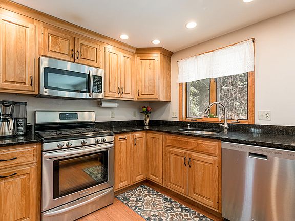 Located on a private lot abutting Bliss Wood's 85 acres of conservation land, this home features many updates and improvements. New first floor master bedroom suite addition/renovation in 2018 including a beautifully appointed bathroom with a tiled shower, soaking tub, and double vanity; office with exterior door; walk-in closet and laundry room, both with built-in shelving. The updated kitchen with maple cabinets, granite counters, and stainless appliances is open to the dining room. Living room with wood-burning fireplace. Three spacious bedrooms and a guest bath upstairs. Large family room over the garage with a propane stove. Three newer heat pumps with transferable warranties. Two large sheds and a playhouse. Commute to Portland in 20 minutes from this very convenient location. 3 bedroom septic design with a new 1500 gallon tank in 2018.