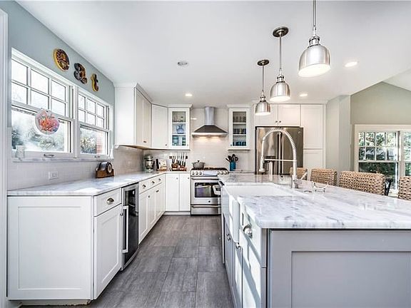 Introducing 8 Shadyside Lane! This sensational home has been renovated top-to-bottom not a single detail overlooked in the creation of this stunning residence, perfectly combining timeless elegance and the finest in contemporary comfort. Located in a sought-after location in Shadyside along a peaceful and private cul-de-sac just moments from all local hot spots. Refinished hardwood on 1st level with abundance of natural light. Layout is spacious and open with eat-in kitchen overlooking living room&breakfast nook. Spectacular gourmet kitchen with large island, farmhouse sink & beverage fridge complete with suite of high-end GE Café appliances. Dining room has wet bar, wine fridge and quartzite countertops. Patio overlooking private fenced yard. Garage to mudroom and 1st floor laundry room. Master bed has vaulted ceilings, wood beams and shiplap. An addition to the master suite with handmade cement tile on heated floors and custom closet. 2 other beds and full baths finish 2nd level.