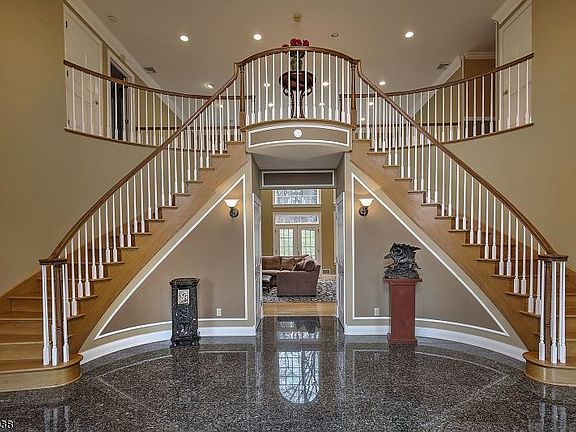 This home with its neoclassical exterior offers views and serenity. Custom built with attention to detail, natural light fills the two story foyer. Spacious principle rooms and wonderful floorplan supports today's lifestyle . The custom kitchen features 2 granite topped islands, chef's appliances and large pantry. It flows seamlessly into a 2 story great room with palladian windows, wood burning fire place and wet bar. The mahogany paneled library boasts a coffered ceiling and plenty of built-ins. The master suite has a beautiful master bath, large walk-in closet with custom cabinets and a balcony to take in the incredible view. With its hilltop location one can be both part of a neighborhood and have privacy. Close to NYC train, I278 and I78. Enjoy quaint Gladstone and blue ribbon schools.
