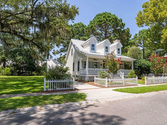 A charming Lowcountry Cottage on a quiet dead end street w/ luxury waterfront homes as your neighbors. No neighbors next door on either side of the home adds to the privacy and quiet. Catch the River breezes from the gracious front porch. High ceilings, mouldings, wide trim, wainscotting, gas FP, oversize windows, custom plantation shutters, and hardwood oak flooring showcase the quality of the home. The open flr plan lends itself to casual living w/ the Kitchen open to the LR and DA. The Kitchen has new appliances including a gas Jennair range and solid surface counters. MBR suite is huge and bright. A half bth, laundry, pantry, and linen closet complete the 1st Flr. A skylight and high ceilings provide tons of light upstairs for the 2 charming BRs and office. Walk in attic storage