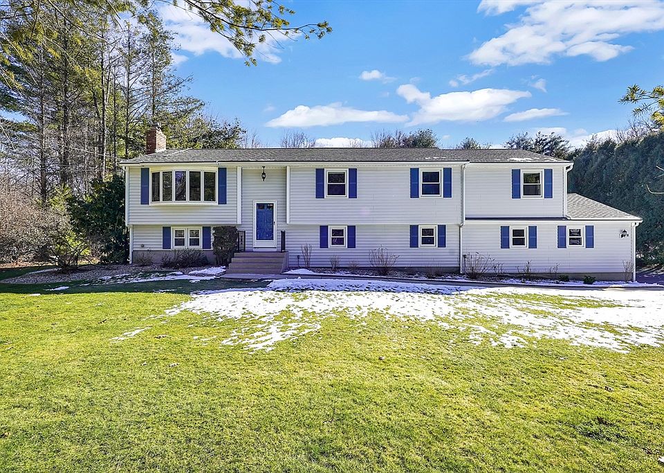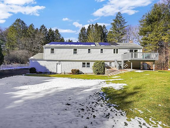 Discover the allure of Sensational SOLAR SAVINGS with seller OWNED panels—no lease as per seller...This delightful raised ranch is perfectly situated on over an acre of land, creating an idyllic haven. Step into a sun-drenched living room adorned with a brick hearth gas fireplace, seamlessly connecting to a refreshed kitchen featuring a pantry, granite countertops, breakfast bar, and all appliances. The dining area, with sliders to deck dining, invites you to relish the picturesque view of a beautiful private backyard. Continuing down the hall, a refreshed full bath, three bedrooms, and a generously sized main suite await, showcasing a full bath and a walk-in closet equipped with a California closet system. The lower level unveils a massive family room, perfect for all your entertainment needs, along with a laundry area and workspace. Embrace the serenity of sunrise from your deck in the mornings. Welcome to the charming 8 Sherwood Dr!