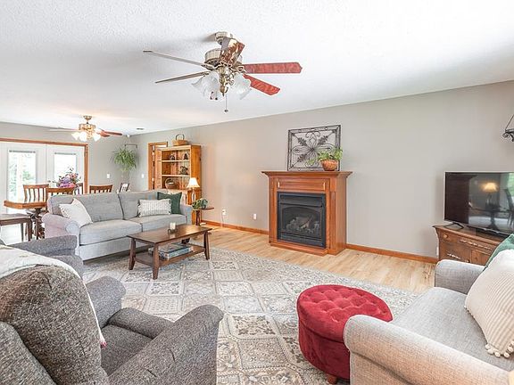 Welcome to this stunning 3-bedroom, 2-bathroom home nestled on 7.3 acres of beautifully maintained land, offering the perfect blend of privacy & space. From the moment you arrive, you’ll be captivated by the home’s incredible curb appeal, surrounded by lush landscaping & mature trees that create a peaceful, park-like setting. This property has been meticulously maintained inside & out. Step inside to an inviting open floorplan with abundant natural light. The spacious living room features a cozy gas fireplace, ideal for relaxing evenings at home. The large country kitchen is a cook’s dream, boasting an abundance of counter space & cabinetry. The luxurious master suite offers a private retreat, complete with an updated en-suite bathroom that includes a soaking tub, separate shower & dual vanities. Two additional bedrooms and a second full bathroom provide plenty of space for guests or a growing family. Step outside to a massive covered patio that extends your living space outdoors, perfect for enjoying morning coffee, evening sunsets, or weekend barbecues. Car enthusiasts, hobbyists, or those needing extra storage will love the attached 3-car garage and the two additional outbuildings. The first outbuilding measures 40x30, and the second—a 52x30 garage—offers even more flexibility. Both buildings are equipped with electricity, and one even includes a bathroom, making them perfect for workshops, a home business, or storing recreational vehicles and equipment.