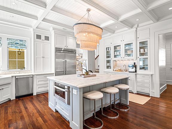 Discover unparalleled privacy in the dual master suites on the first and second levels, each featuring private sleeping porches for indulgent afternoon slumber and exquisite ensuites with saunas and the finest of finishes. With two additional guest suites, a bunk room, bonus room, and a charming carriage house, this residence offers endless possibilities for gatherings and luxurious beach vacations. An elevator makes it easy for all to access each level of the home, and a new roof was installed in 2024.