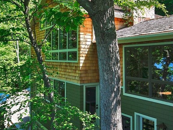 JUST REDUCED! Subject to Bank Approval! 200" Direct Waterfront on CANDLEWOOD LAKE Western Exposure in Private Gated Lake Communityw/the most vivid panoramic sunsets imaginable. Intoxicating Views by Night-Inspiring Lake & Mountain Vistas by Day. Multiple Decks . 8-person Hot Tub on fieldstone patio w/small private cabana plus Water's Edge Cabana, Pergola covered Deck & Large Deep Water Dock AWARDS - 2008 Home Builders Industry (HOBI)) Grand Award for "Project of the Year" and award for "Best Remodeled Vacation Home" in the State of Connecticut. EXTREME MAKEOVER! ARTS & CRAFTS DESIGN High style Drama w/sensuous curves of architecture. Inspiring walls of windows marry open interior to the beauty of the natural surroundings. Timber frame & field stone spaced balanced w/traditional room design. Post & Beam integrate successfully with more formal parts of the home to create a sophisticated, country warmth w/unique contours & configurations. Red Cedar Shingle 3-4 BD/3.5 BA - 3500 square feet SHAPED BY WATER...CHISELED BY WIND...EXPERIENCED BY FEW! Energy Star Rated Home/Wired for sound and modern communications LET YOUR IMAGINATION DO THE REST. Special Site Features: · 200 feet frontage on Candlewood Lake with expansive views, natural beauty and recreational access · Steep rugged topography · Private, on cul-de-sac, in gated community · Restricted building envelope (limited to existing footprint) Key Design Program Elements: · 3,500 sq. ft. whole-house remodel of multi-level cottage. · Added 600 square feet of new space · Reconfigured existing space to take advantage of views Owner/Builder-Master Carpenter Stewart Lade - (Architect-designed-whole house renovation)- “We reconfigured the existing space to take advantage of views, changed the exterior for a more natural connection with site and lake and created interior finish d