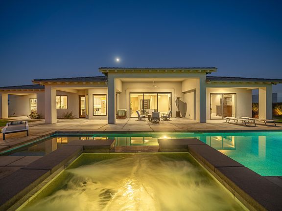Former model home by premier custom home builder Kenneth Cokeley is now on the market in Siena Vista Estates. Siena Vista Estates is an exclusive enclave of 9 custom home sites in a gated community in Rancho Mirage. This exceptional home was the model home for the community so attention to detail and the finishes of this home are of the highest quality. Designed with an open floor plan there are 4 en suite bedrooms including two master bedrooms, attached casita, and 3 car garage. You will find 5 bathrooms including powder room, a formal dining room, spacious living room, great room/family room, wet bar, den/office, 2 fire places, gourmet kitchen with quartz counter tops, a center island, breakfast nook, and Thermador appliances. This home has security system with cameras. Outdoor you will find a salt water pool and spa, fire pit, covered patio, and pergola with outdoor kitchen all located on a huge lot approximately 16,553 sq ft with mountain views. This home has owned solar and is in the IID power company. Low HOA dues only $265 per month. One block from Mission Hills CC. This home is located on fee land so you own the land. This spectacular home has it all!