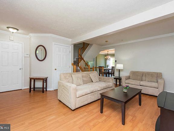 Exceptional end of group town home nestled in a peaceful cul de sac, close to everyday needs! This lovely home is filled with stylish finishes and natural light throughout, including the spacious living room with decorative crown molding and luxe wood-look laminate floors leading to open kitchen-dining area boasting granite counters, center island, stainless steel appliances and modern white cabinetry. Access the sizable deck off of the kitchen, overlooking beautiful fenced backyard. Upper level hosts three cozy bedrooms with custom closet systems, including tranquil Owner~s bedroom with oversized walk in closet. Finished lower level offers plenty of space to relax and unwind and includes a full bathroom and utility room with lots of room for storage. Enjoy plentiful community amenities including tennis, three swimming pools, walking trails, dog park and more! This home is impeccable and move-in ready today!