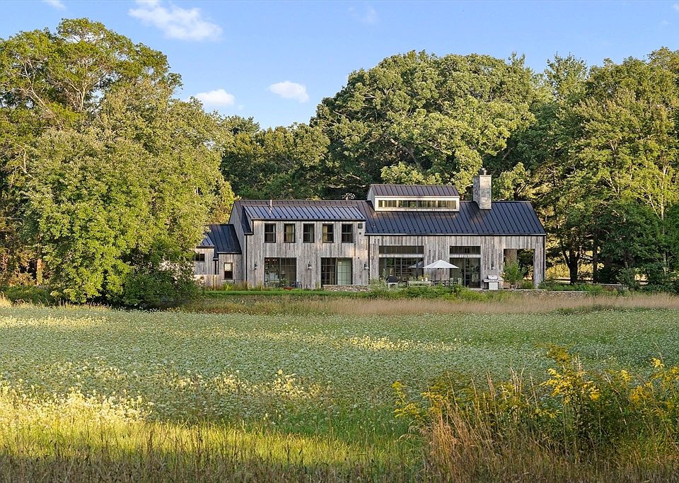 This stunning contemporary farmhouse, Custom built in 2022, is a showcase of exceptional finishes, spectacular views, a show-stopping Great Room as well as more intimate spaces. This distinctive home includes a first floor Primary Suite, two gorgeous bedrooms upstairs each with a private full bath, and a thoughtfully finished lower level with a fourth bedroom, full bath and Den/TV room with Wet Bar. Bespoke details include Carlisle wide plank hickory floors, reclaimed French limestone floors, Custom Millwork throughout, Walnut Island Top, Danby Marble counters, Elmwood Reclaimed Oak barnboard siding, Standing Seam Metal Roof & more. Blending inside with outside, the enchanting exterior spaces offer different possibilities for outdoor living, and the oversized custom windows & doors bring the outdoors in. A true jewel box, less than 20 miles from Boston/Cambridge, on a lovely country road in bucolic Lincoln, a town revered for its abundance of conservation land and outstanding schools.