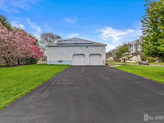 Located in a prime area just off Route 130, this stunning north facing 2-storey colonial home is situated on a northeast corner) built in 1988, offers 5 spacious bedrooms and 3 full baths, with a stand-out first-floor in-law suite, perfect for guests and family. This suite features a fully updated bath (2023) with a new window, vanity, toilet, and a standing shower with a bench. The home boasts an open floor plan, ideal for both entertaining and everyday living. The foyer welcomes you with beautiful granite flooring that flows into the separate living and dining areas, featuring hardwood floors. The updated kitchen includes newer cabinets, stainless steel appliances, granite countertops, and granite flooring, and it seamlessly connects to the breakfast area and a sizable family room. The family room features hardwood floors, recessed lighting, a natural gas fireplace, and an integrated surround sound system with Bose speakers, perfect for movie nights and gatherings. A patio door leads out to a maintenance-free deck built in 2000, ideal for outdoor entertainment. The first floor also features a Bosch washer and dryer, adding convenience to everyday living. The second floor has 4 sizable bedrooms, including a master suite with a walk-in closet, recessed lighting, and a ceiling fan for added comfort. The updated master bath includes additional closet space, a Jacuzzi, new tiling, a dual-sink vanity, and a large, bright skylight. There is a second large skylight in the hallway. The main bathroom was updated in 2016 with new tiling, glass enclosed bathtub, and a dual-sink vanity. Other standout features of this home include a central vacuum system, state of the art alarm system with 5 cameras, and owned solar panels that significantly reduce electricity costs, providing energy efficiency and long-term savings. The HVAC system and hot water heater are 13 years old, and this second layer roof was replaced in 2017, providing peace of mind for years to come. The spacious unfinished basement is ready to be finished to suit the new owner's needs, offering endless possibilities for extra living space, a home theater, a gym, or more. This home offers high-quality finishes throughout and is in a fantastic location with easy walking access to an elementary and high school, minutes from Highway 130/Rt. 1 and the North Brunswick Shoppes. Don't miss out on this exceptional property schedule your tour today!