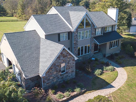 Elegant and Sophisticated! Two-Story Center Hall with Four Bedrooms and 2.5 Bathrooms situated on 1.5+ acres of picturesque grounds and located on a tree-lined street with cul-de-sac in the heart of Bucks County. Council Rock School District. 4200 square feet… considerable room sizes and expansive open floor plan for entertaining. Gourmet kitchen with white cabinetry, granite countertops, stainless steel appliances, designer range hood, subway tile backsplash, wall mount pot filler, and beverage center. Center Island with overhead pendant lighting and breakfast room with plenty of windows can double as a sunroom. Two floor-to-ceiling fireplaces with stone surround; one fireplace in the formal living room and fireplace #2 in family room accented with high cathedral ceiling, angled windows to maximize light and views, and ideally positioned off Kitchen with access to huge deck. Hardwood floors throughout the first and second floor. Dining room with recessed lighting and views of front yard landscape. First floor office and laundry room. Powder room with craftsman style Wainscoting. Master Bedroom with vaulted ceiling and sitting room overlooking front yard includes dressing area, walk-in closets and completely updated Master Bathroom with vaulted ceiling, oversized shower, deep soaking tub, two vanities and private deck with views of a well-manicured lawn with established trees, shrubs, and plantings. Upstairs are three additional nicely sized bedrooms sharing a newly renovated hall bathroom and having plenty of closet space. Lower level is partially finished as recreation room /playroom with wall-to-wall carpeting, drop ceiling, and panel lighting in addition is an abundance of storage in the unfinished area and steel Bilco doors to the outside. Oversized 3-Car Garage. Whole house generator. Recent updates include Roof, Siding, Skylight, Casement windows, Hardwood floors, Kitchen cabinets, countertops, tile work and appliances, Decorative moldings, Propane water heater, Hall bathroom, Split-rail fence, Interior doors, Well pump, Master bathroom, and Generator. Around the corner you will enjoy a Family-run farm offering produce, baked goods & preserves, plus pick-your-own fruits & vegetables.