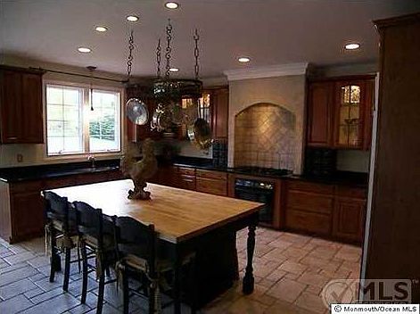 EXQUISITE 5 Bdrm,4.5 Bath Cust-built home sits Majestically on 2.5 acres - flat priv prop.Dbl Dr entry leads into beaut foyer lkng thru to Brick&BlueStone patio w/GorgeousLandscaped yard & ingrnd pool.Lovely Frml DR w/Coffered Ceil,Huge Gourmet Kit w/LARGE Butcher Blk Ctr Isl,Butterscotch Cabs,Butler Pantry w/handmade BI Wine Rack.LR w/Beamed Cath Ceil adds to character of the house.FR w/BI walls of Bkshlvs&Curio cabs surrndng Slate frontFP GrtRm over garage w/BI Bar.Mailzip 07701 SEE AGNT RMKS Brokered And Advertised By: Kubis Realty Group Listing Agent: Carole Kubis