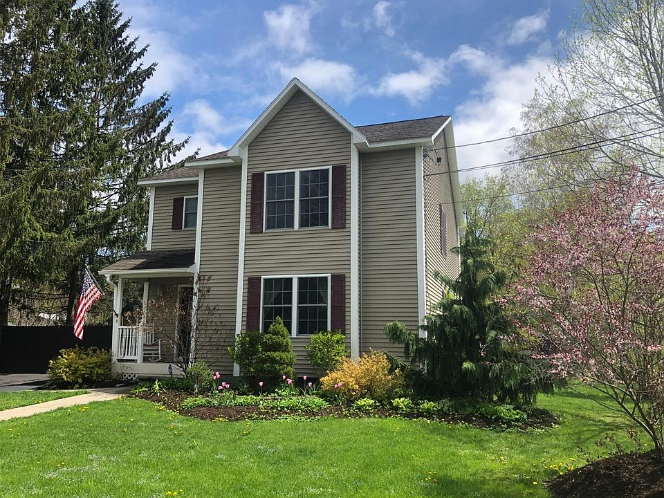 Beautiful 4 bedroom 2 1/2 bath colonial in the Village of Moravia on a quiet side street. Features large open rooms, hardwood floors, a master en suite with walk-in-closet, a large semi-finished space in the basement that could be used for a man cave/hobby space or kids play room. Large private back yard with a fenced in area off one of the back doors that is perfect for keeping the dog safe. Includes a large 18x12 outbuilding. Enjoy a family BBQ on the back deck and if it gets too hot, relax inside with central AC.