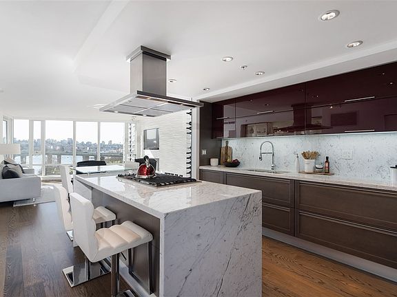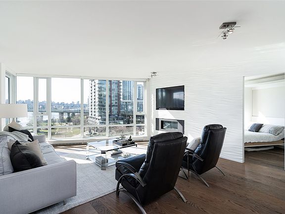 Sophisticated on Smithe. Welcome to this modern and sleek, 2 bed 2 bath condo at reputable Flagship. This home has been upgraded with Carrera marble island & backsplash, Italian cabinetry, Subzero fridge, Viking & Miele appliances, custom Vodka Bar, & air conditioning and built in Murphy bed and storage. Relax on your West facing patio & watch the people & the boats go by or join the action in the resort like amenities incl use of your own kayaks and 24/concierge. Steps to new JW Marriott Casino and Hotel, Rogers Arena, Urban Fare and seawall. 2 parking and storage included. This Yaletown condo offers a true Westcoast lifestyle. Open House Feb 29th 2-4pm/March 1st 2-4pm.