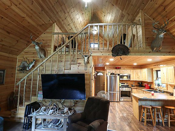 Welcome to your very own private retreat! This custom built cabin sits on a spacious 6.5+/- acres. You will feel the privacy and connection to the woods when you first arrive. The close proximity to Bennett Spring State Park is a huge perk for outdoor enthusiast. Just a short 10 minute drive and you will be inside the park. Making this the ideal home for anyone who enjoys world class fishing just a few minutes away. This home would also be a great fit for a weekend rental. Two openings have been made in the timber to grow food plots for deer. Perfect for sitting on the covered porch and watching the wildlife in the morning, or making the trip down to the hunting shed below the house for opening morning of deer season. Once you step into the house you will notice all the beautiful custom woodwork and high ceilings. From the handrails to the countertops, every feature has been carefully thought out and built. The tall exposed ceiling makes the space feel open and welcoming. The 2x6 walls were insulated with spray foam, making it very efficient. Outside you will find a few sheds to store all your gear. Also a 30 amp service for a RV hookup, and a wastewater disposal line. Making hosting guests quick and easy. The recreation that is close by is second to none. Lake of the Ozarks and Pomme De Terre Lake are both under 30 miles. Floating the Niangua River is another great option many people enjoy. The river is just a short 2 miles away. Whether you're looking for an investment property or your forever home this property is a perfect fit. Come out and take a look today.