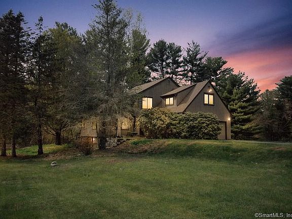 Beautiful contemporary with serene views from every window. 1.5 acre private, flat lot. Completely renovated kitchen. Lovely living room with cathedral ceilings and floor to ceiling fireplace. Hardwood flooring throughout most of 1st level and hallway/bedroom upstairs. Incredible wrap-around deck overlooks private backyard. Walkout finished basement perfect for play room, home office, gym, or media room. Walk up attic has loads of storage options. Roof is 5 years young. Minutes to endless recreation at Simsbury Farms & McLean Game Refuge.