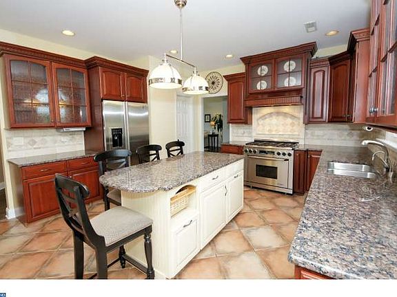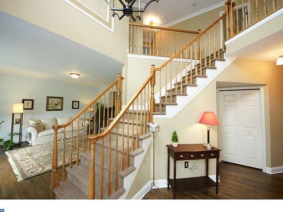 Elegance abounds in this spacious colonial situated on 2 acres of gorgeous property at the end of a cul de sac. Two story foyer, 9 foot ceilings on the first floor and decorative moldings and wide baseboard throughout. Hardwood floors can be found on the first floor except for the kitchen. Quite ideal for entertaining are the formal living room that flows nicely into the formal dining room. Gourmet kitchen offers upgraded cabinets, center island, granite counter top, high end stainless steel appliances, walk in pantry, and travertine tile back splash. The morning room or breakfast area has doors that lead to a spacious two tier deck that overlooks the expansive and private fenced yard. A true L-shaped in ground pool completes this awesome retreat. Step down family room features vaulted ceiling with skylights and a gas fireplace with marble trim and hearth. Four bedrooms are on the second floor including the master suite with separate sitting area, double sided gas fireplace, and California closet and built in. The newly renovated master bath completed April 2016 is stunning and boasts an inviting slipper tub, wide shower stall with marble surround and clear glass frameless door, and double vanity and sink. The other three bedrooms also have California closets and a newly updated full bath with double sink/vanity and granite counter top. The beautifully finished basement 2011 has several areas for recreation, an exercise room, and a full bath. Other updates are roof 2010, windows 2013, 1st zone furnace and air conditioning 2008 2nd zone 2015. All this within minutes to schools, shopping, Hamilton Train Station, and major roads Rt. 130, 195, NJ Tpkefor easier commute. Excellent Robbinsville Schools complete this special offering!