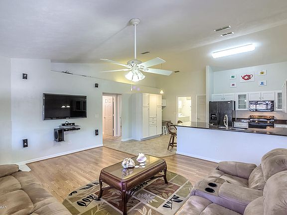 LOCATION ! This desirable neighborhood is close to Port Orange shopping and the beach! A FRESHLY PAINTED quality Johnson built home with upgrades. Corner lot, higher elevation, split bedroom plan, open concept kitchen, spacious owner's suite, fireplace, granite kitchen, and numerous upgrades. Enjoy, mature trees, and room for a pool too. A very welcoming front porch, brick front, double car garage and sprinkler system add to the easy living. There's a large back balcony which could be enclosed for more living area, but, it's perfect for family relaxation. A corner fireplace and ceiling fans adorn the great room. Home has room for the entire family, and it's very convenient to Port Orange or Daytona shopping, many restaurants nearby. Priced less than comparable homes.