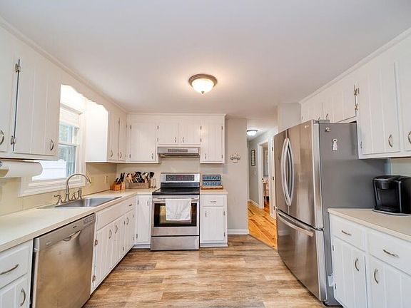 Discover the blend of tradition and convenience in this 4-bedroom Cape, featuring 2 baths and a prime location near shopping, restaurants, and highway. Enjoy the warmth of beautiful pine floors throughout, an updated kitchen for culinary adventures, fixed wall a/cs and a cozy fireplace for relaxing evenings.Nestled on a spacious lot, this home offers an outdoor shower for beach days, and peace of mind with an updated septic system--a rare find in a sought-after area. The shed is great for all your gardening tools. Irrigation in the front yard is a big plus!This Cape is an ideal setting for comfortable living with easy access to all life's necessities.