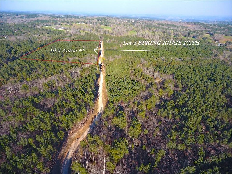 Welcome to Spring Ridge Path! Eight Estate lots ranging from 10.5 to 11.8 Acres! Lot 8 is a 10.5 Acre tract with frontage on the private path as well as Spring Rd. Located just minutes west of Dallas this tract is a mixture of mature pine and hardwoods with gently rolling topography, nice ridgetops and small hollows make for multiple stunning homesites on each lot! Located off of Spring Rd., Spring Ridge Path is the ideal location for you to build your own custom home nestled in this quite yet convenient corner of Paulding County. These estate lots feel as if they are located in the North Georgia Mountains yet they are less than a 10 minute drive to the shops of Downtown Dallas! Call your builder and tell him you found the spot you’ve been looking for…..Spring Ridge Path!