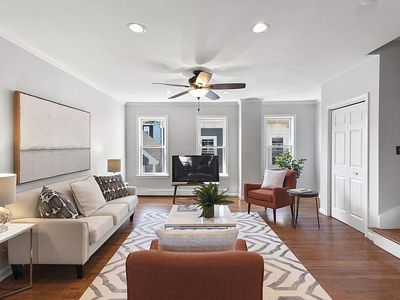 Best of South Boston living by the beach! Welcome home to 8 Springer Street - an upper level duplex that lives like a single family on a quiet east side street. This freshly painted 2.5 bed, 1 bath home has so much to offer. As you walk into your private entrance, you are greeted w/ a large, bright & open living/dining area perfect for entertaining, a cozy night on the couch or Sunday football. Off the dining area is a functional kitchen complete w/ stainless steel appliances. Off the kitchen/dining area is one of two private outdoor spaces. As you make your way to the upper level you will find 2 large bedrooms & an additional bonus room perfect for a home office or nursery. One full bath w/ in-unit laundry completes this level of living. Rounding out all of this homes offerings is a large private roof deck w/ sweeping water views. Ample closet space, hardwoods throughout & steps to public transportation, the beach and lively E. Broadway make this the perfect place to call home!