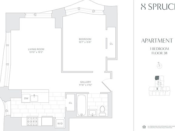 The photos in the gallery are an example of 8 Spruce apartments. The actual layout, finishes, and views may vary. Consult our leasing specialists for details.