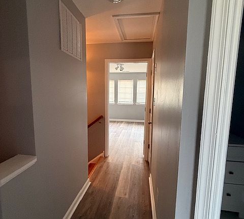Upstairs find the 3 bedrooms and 2 full bathrooms. The large primary bedroom has its own full bathroom and walk-in closet. The hall full bathroom has a tub shower. The other two bedrooms are nicely sized.