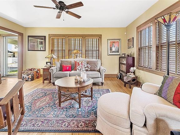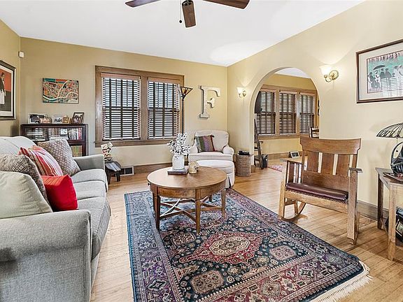 As you walk onto the covered front porch you get a feel for the charm of this 1930's crafted home. The original front door leads you into a comfortably sized foyer that has a large closet to hang up all your coats. The archway leads you into a good sized living room with original hardwood floors and arches to the dining room. The triple window in dining room has the same custom shutters as the living room. The kitchen has stainless steel appliances and a little breakfast nook. The backyard has privacy fencing around three sides and is bordered by the 2 car garage. The second floor bedrooms are all hardwood floors. The master bedroom has a nice sized walk-in closet.