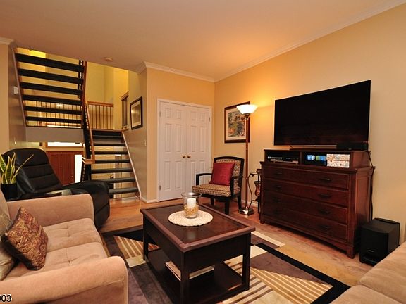 Immaculate and spacious luxury living in this multi-level townhome. Located in a quiet community yet close to shops, restaurants, major highways, and convenient train or bus travel to NYC. This unit is bright, airy, open and sparkling clean. Spacious and inviting entry foyer. The eat-in kitchen with breakfast bar features custom wood cabinets, granite counter-tops and travertine tile. Custom crown molding adds an elegant touch to the open living/dining room. Master bedroom with vaulted ceilings, two large master closets, spacious bathroom with jetted tub, double vanity and skylight. Custom closets for maximum organization. Large deck with gas line hook up for grill. The unit comes fully furnished, if desired. This beautiful unit must be seen!! Simply unpack and enjoy luxury living at its best!