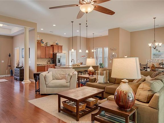 Spacious 5 bedroom/ 3.5 bath located in Heritage at New Riverside. Convenient to Savannah, Bluffton, Beaufort, and HHI. Open floor plan for easy living with wood floors in foyer, powder room, kitchen, dining, and living room. Tile in laundry and baths. Kitchen features upgraded cabinets with granite counter, tile backsplash, and stainless steel appliances. Screened porch overlooking a wooded view. State of the art amenities: zero entry pool, fitness facility, playground, & 3.4 mile walking nature trails.