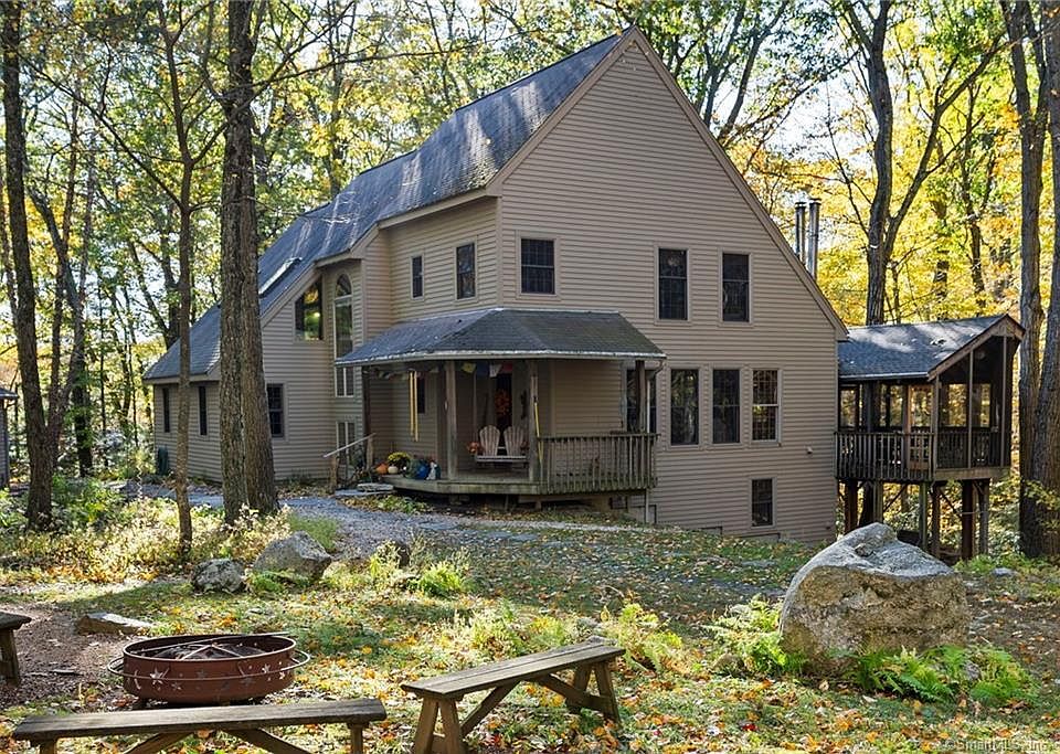 Tucked away on 10+ acres of enchanting woodland, this property is a haven for those seeking serenity and a life in harmony with nature. A custom-designed, modified post and beam, built by local craftsmen, it has an open, but intimate floor plan, flooded with natural light. Enjoy the convenience of a main-level in-law or primary suite with sleeping and living areas, and private bath, offering possibilities for a variety of shared living options. French doors lead from the dining area to what is currently used as a study, but would also make a lovely music room or den. Enjoy the warmth of the woodstove in winter, and the screened porch the rest of the year. Upstairs you will discover a spacious primary suite w/ walk-in closet and a bath with inviting claw-foot tub. There is a third bedroom, a hallway bath and a large, versatile room that was originally to be a bedroom, but was made an art studio and work space. This room is also accessed by a private exterior staircase, leading to a waiting area, which is ideal for seeing clients, or whatever suits your needs. The walk-out lower level offers a recreation room and guest room, den or office. Follow the winding path to a babbling brook and unwind on the bench or in the screened room by the waters edge. Discover the endless possibilities with multiple outbuildings, including a writers shed, and barn with 700+ finished sft, for a yoga/art/music studio, or gathering space. This magical property is ready to bring your dreams to life! This is a very rare and special property; not one to let slip away! Call today. 7.61 acres in conservation and is protected from development. Floor plans available upon request.