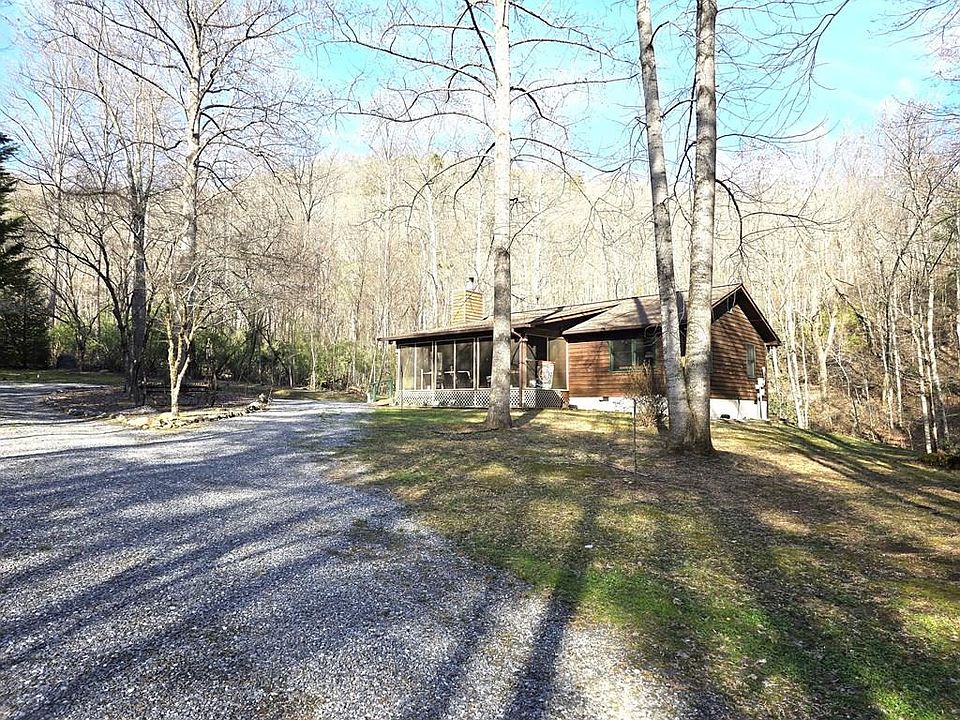 Nice 2/2 home in the mountains of North Carolina. Seller has updated home with a beautiful new kitchen with all new high-end appliances as well as completely remodeling both bathrooms. On the exterior there is a new roof, new gutters with leaf guards, a new water filtration system for good clean water. Washer and dryer is also new. It's a large lot containing 2.86 acres. It's very private land and It joins thousands of acres of USFS land on the East side. There is a small creek on the property, very easy access, no steep or narrow roads to get to the house. Enjoy a seasonal mountain view from the screened in front porch or choose the wooded scenery from the back porch which is screened as well. There is plenty of parking with a circle drive, already a small fenced in area for the pets but could be expanded, and a nice outbuilding. Home comes with some furnishings and has fiber optic internet. Truly a little slice of paradise. Make your appointment to come see today!