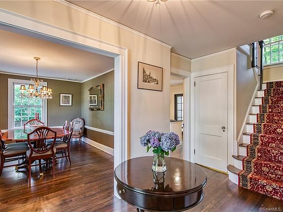 Exceptional Stucco colonial on one of West Hartford's most coveted cul-de-sacs! Curb appeal is only just the beginning of what 8 Stratford Road has to offer. Enter into a gracious foyer and you will notice the gleaming hardwood floors throughout, feel the cool air envelop you (hint: central air) and see the elegant living room to your right with floor to ceiling white brick fireplace. French doors off the living room will lead you to the breezy side porch which also connects you to the picturesque 45' patio and professionally landscaped yard. The dining room to your left has the signature West Hartford corner cabinet with ample storage space. Kitchen is outfitted with stainless appliances, gas slide in range, granite counters and island with granite top. Perfect for the baker who needs to spread out while watching your cooking shows! French door slider in kitchen leads to patio for grilling ease! Master suite with sitting area and hotel quality marble bathroom complete with heated floor and walk in marble shower with custom glass doors. Second floor also has updated hall bathroom and 2 more comfortable bedrooms each equipped with custom privacy shutters. Walk up attic is partially finished, with plumbing, heat and ac - all you need to do is finish this amazing dormered space to add an additional 600 sq. feet of living space. Lam beam was installed for future use. Steps to Elizabeth Park for evening strolls through one of West Hartford's finest neighborhoods.