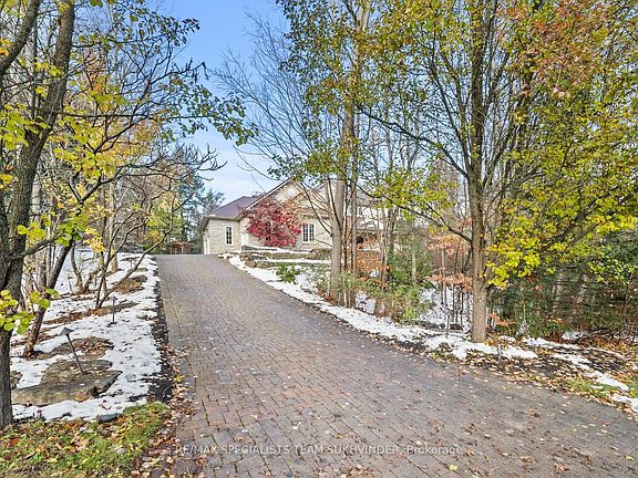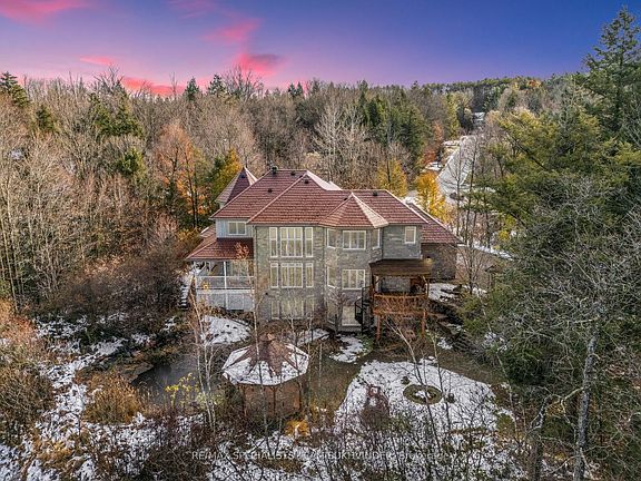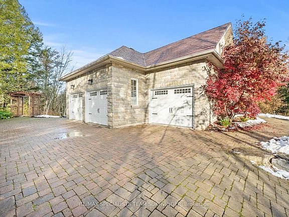 Discover this remarkable custom-built stone residence set on nearly 6 private acres in prestigious Pipers Hill Estates, tucked away at the end of a quiet cul-de-sac. Just minutes from the city and airport, this exceptional property offers the perfect blend of peaceful country living and modern convenience. Offering approximately 5,000 sq. ft. of finished living space, the home welcomes you with a grand two-story foyer and a dramatic great room filled with natural light from floor-to-ceiling windows. A steel roof, wraparound porch, and timeless stone exterior enhance its impressive presence, while high-speed fiber internet (Bell & Vianet) ensures reliable connectivity. The open-concept kitchen features extensive cabinetry, a generous breakfast area, stainless steel appliances, and a walkout to a deck with sweeping views of the surrounding landscape. The primary suite offers a serene escape with an updated, spa-inspired ensuite and custom closets added to all bedrooms (2025).The bright, full walkout lower level includes oversized windows, a 4-piece bathroom, and direct backyard access-ideal for a recreation area, gym, or potential in-law suite. Outdoors, the property unfolds into a private natural retreat complete with interlocking stone patios, a firepit, pergola, and a hardwood forest with a stream and peaceful walking trails. With its naturalized landscape, the grounds offer privacy and beauty with minimal maintenance. Practical conveniences include a spacious 3-car garage, smart lock exterior doors, Wi-Fi-enabled garage door openers, an EV Level 2 NACS (Tesla) Charger installed in 2023, and a 22kW standby power generator.