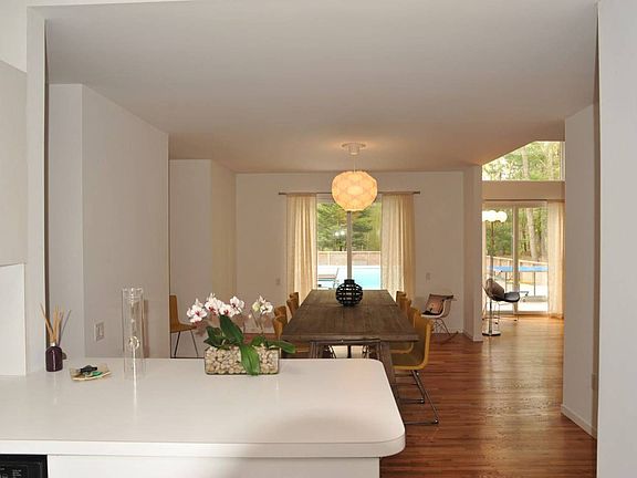 Rental Registration #: 24-1066 This lovely home is located just outside East Hampton Village. Features include three bedrooms, two baths, a spacious open layout with double height ceilings in the living area, glass sliders throughout fill the interior with sunlight and a large loft overlooks the living room. Outside a heated pool surrounded by a deck, perfect for entertaining. Only a few miles to East Hampton Village shops and beaches. Rental Registration #18-1325