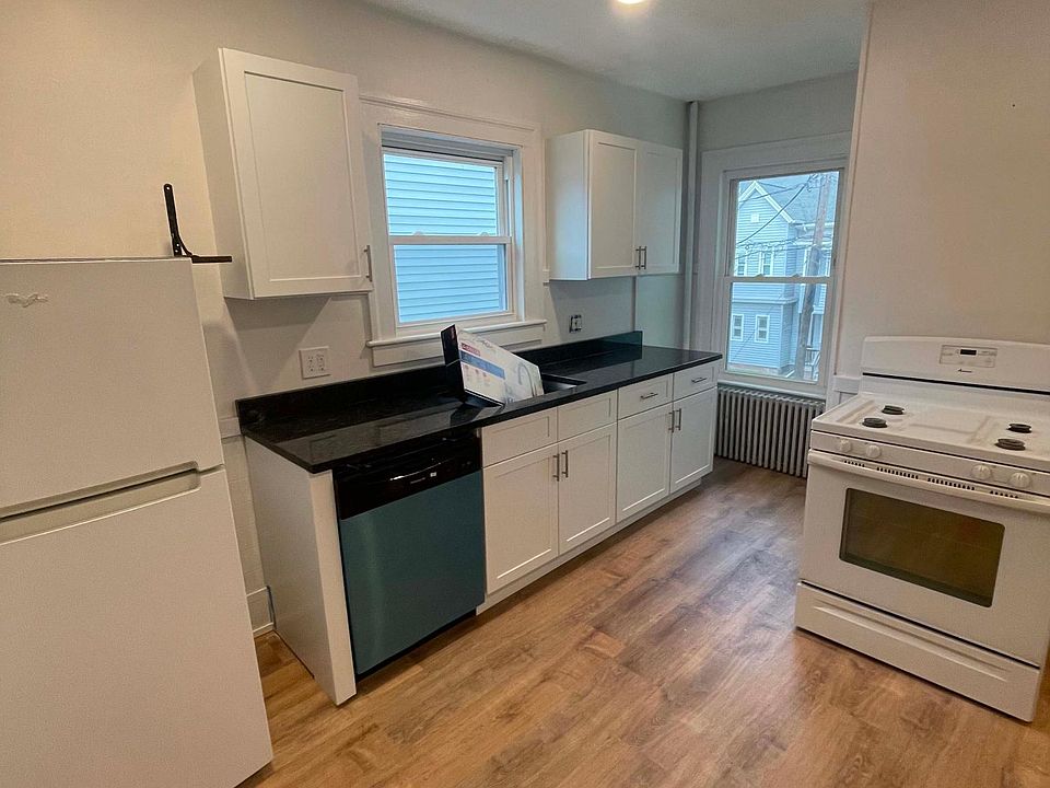 Sunny & updated 1 bedroom apartment in central Easthampton available immediately. Second floor apartment features all the updates: new kitchen & bathroom, new flooring & electrical, fresh paint, and new highly efficient heat & hot water. Large bedroom has ceiling fan & closet. Living room *could* be used as an additional bedroom as it has a closet & smoke detectors/CO monitor. Large eat-in kitchen features dishwasher, range, and fridge. New bathroom has shower, vanity, and washer/dryer. Lease includes water & garbage disposal. Plenty of street parking; the house is next to the large Easthampton Savings Bank lot. No pets please (even ESAs due to management allergies). Responsive landlords live about 10 minutes away. First/last/security required with lease signing. Year lease ideal but would consider an 8 or 9 month term. Available immediately. No smoking allowed. No pets due to owner allergies.