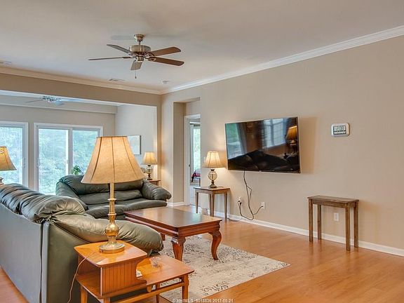 Beautifully appointed Lark villa - Gleaming hardwood floors in Foyer, living and Carolina room incorporated as part of the living area, overlooking the lagoon and woods. Open kitchen/eating area/ Dining area and living room and separate Den with hardwood, Master with Bay window and full bath, Guest bedroom and guest bath, bedrooms are carpeted. Epoxy garage, beautiful paver patio which overlooks the lagoon and wooded area make this villa an enjoyment to own. Don't miss this spacious Villa.
