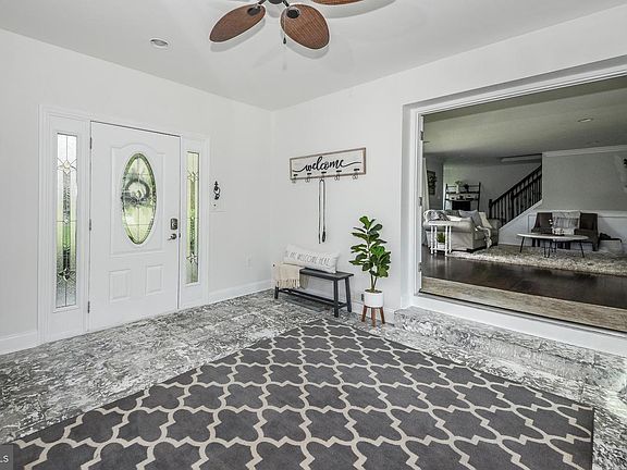 Tastefully decorated in neutral tones throughout, this move-in-ready home in Yardley's Sunny Knolls is a breath of fresh air with plenty of space to spread out. From the welcoming front porch, where you can have morning coffee, to the expansive .88-acre yard with large entertaining space and garden, the whole property is sure to wow. Remodeled with the modern family in mind, you enter into a spacious breezeway foyer that accesses the backyard at the far side, the garage to the right, and the home's living room through beautiful French Doors to the left. This open and airy space is the perfect location for a home command center or covered seating area. In the home, dark scraped wood flooring offers richness to balance the bright and airy picture window wall and light wainscoting trim. Across from the living room and carried by the same flooring, the dining space is set against another picture window wall with deep green views. Adjacent to the dining area, the open and thoughtfully planned kitchen has been finished in crisp white tones and offset by rich granite countertops. Two counter height seats offer space for informal dining or chatting while the home chef prepares the meal; stainless steel appliances and ample kitchen space make the preparation an easy task. A door to the backyard encourages outdoor entertaining in the warm weather months. From the far end of the kitchen, find a hallway accessing the two spacious lower-level bedrooms and full bathroom. Across from the stairs to the upper level, a sunny office nook makes excellent use of the space where the original front door was once located. Once upstairs, two extra-large bedrooms, both with neutral tones and office/reading nooks in the dormered windows, offer plenty of space and share a full hall bath with a tiled tub surround. A hallway play area between the rooms offers a place for books and toys or a small desk setup. The finished lower level is sure to please with a full-wall custom bar and counter height seating. Open and spacious with recessed lighting, the basement level has two distinct spaces in which to relax, entertain, exercise, or play games. This home's appeal doesn't stop at the interior: once outside, an extra deep and private yard is the backdrop against which the outdoor living can begin! Deep in the yard, there is room for playhouses, trampolines, adventures and more all under the view of the relaxing, gas fire pit area, the home spa, or the dining area. Intimate gatherings and large events alike can be had in this excellent backyard. A large garage offers convenient parking and storage space. Close to parks, golf courses, and Newtown and Yardley Borough, this lovely Pennsbury School District home has endless charm and is waiting to be called home.