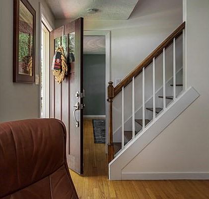 Don't miss out on this beautiful 4 bedroom New England Gambrel in an established, desirable neighborhood. Bright eat-in kitchen with corian countertops, white cabinets and stainless-steel appliances. Picturesque bay windows in the formal dining and living room bring in great light. A Vermont Castings fireplace in the living room makes for a cozy spot in colder months. Gleaming hardwood floors throughout the house. First floor bedroom and 1/2 bath. Finished lower level with gas fireplace plus area for storage, exercise room and laundry. Perfect backyard for summer entertaining with a refurbished wood deck, beautiful garden with established perennials, and in-ground pool with patio and firepit. Sidewalks in the neighborhood make for a great place to stroll, ride bikes, walk pets, etc. Close to the quintessential center of town with a brand-new library, shops, restaurants and common area.