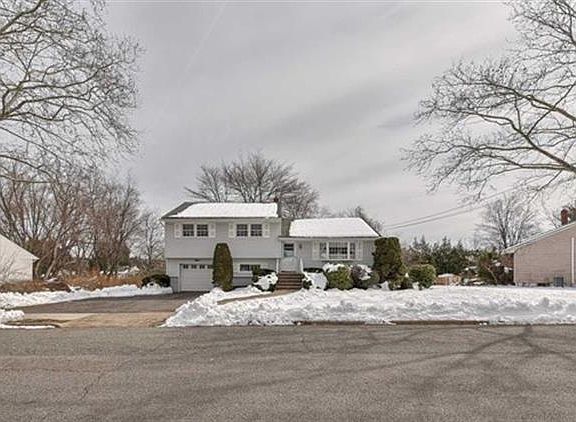 Location! Location! Location! First time offered split level home in desirable neighborhood at an affordable price w the perfect level spacious yard! Short commute to NYC transportation. Entry foyer open to the living room and dining room, bright and airy with hardwood floors, eat in kitchen w solid oak cabinets that can be easily refinished for a fresh new look. Second floor offers Master bedroom w bathroom, two spacious closets; two additional bedrooms, main bathroom, access to two attics, hardwood floors. Ground level offering family room, laundry, powder room, walkout to garage. Den recreation room w plenty of closets, storage, utility in basement level. Special features: new carpeting on ground, central and hot air unit, deck and patio. One year HMS Warranty included!